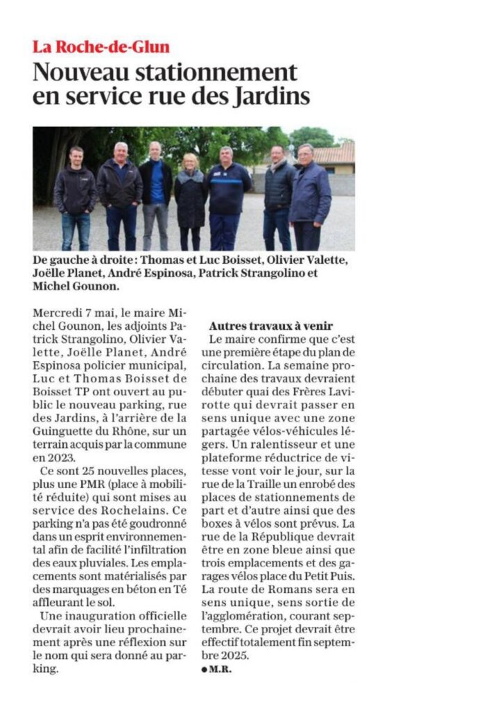 Nouveau stationnement en service rue des Jardins